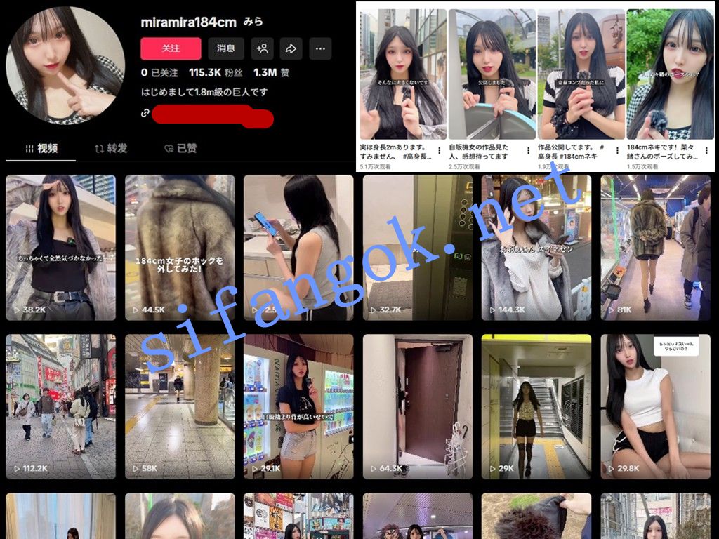 ⭐40万粉丝 一米八女巨人萝莉Mira⭐ 不知都大家的抖音上有没有刷到这个妹子 在 国内 国外 各个平台都能搜到这个网红 一米八女巨人 全网各平台有40w粉丝 tiktok就11万粉丝人气超高 这妹子早期开直播全漏自慰没人气,突然在tiktok因为个子高火起来了 之后就疯狂营销自己184,是女巨人,(毕竟日本184已经是巨高了) 在后来为了挣钱开始下海自己拍片,但是巨恶心
